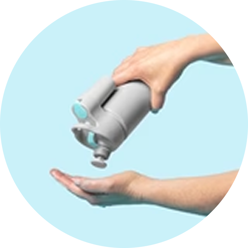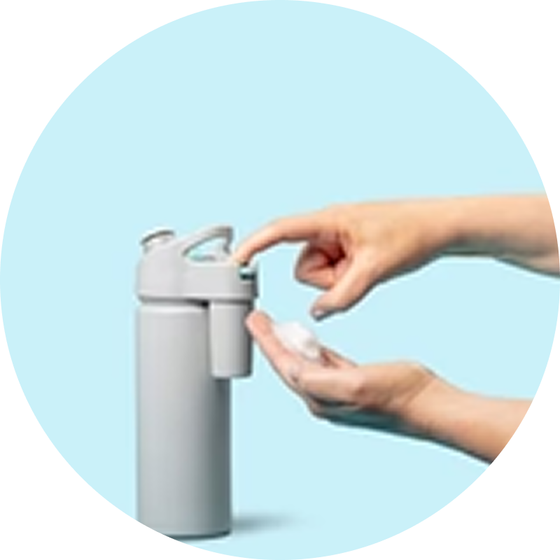 A portable bottle that delivers real soap and water for proper handwashing anytime, anywhere.